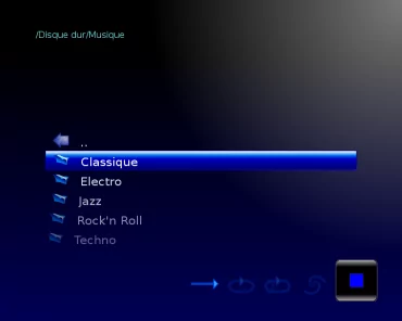 Une nouvelle application très intéressante a été ajoutée au FreeStore. Nommée MusicBox, elle permet de transformer sa Freebox en chaîne Hi-fi. Le principe est simple : une fois les musiques transférées sur le disque dur de la Freebox, MusicBox propose une interface de navigation dans le disque dur de la Freebox. Comme sur un lecteur MP3, plusieurs options de lecture sont disponibles :