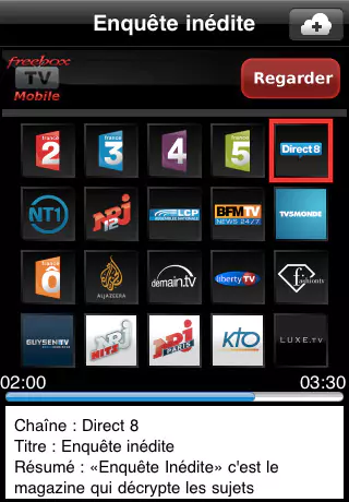 Pour rappel l’application permet de visualiser les chaînes tv.freebox.fr depuis son iPhone (à condition d’être connecté sur un réseau wifi Free)