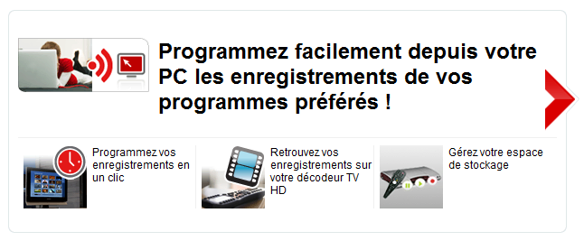 Quelques mois après Free, SFR lance son service d’enregistrement à distance. Comme chez Free, il est donc dorénavant possible aux abonnés SFR disposant d’un disque dur de programmer leurs enregistrements depuis n’importe quel ordinateur. SFR a même ajouté la possibilité de gérer les contenus de son disque dur à distance, en effaçant certaines vidéos par exemple. Une fonction qui serait bienvenue chez Free.