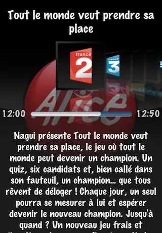 Les applications développées spécifiquement pour les abonnés Alice sont plutôt rare, mais elles existent ! L’application Alice Tv vient ainsi d’être lancée sur l’AppStore. Elle permet aux abonnés d’Alice de pouvoir regarder une vingtaine de chaînes depuis l’iPhone (celles disponibles en web TV). Pour pouvoir regarder la Tv, il faudra être en connexion wifi avec une Alice Box. L’application est également compatible avec la Freebox.