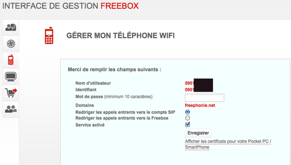 Vous trouverez dans cette rubrique votre nom d’utilisateur, identifiant, mot de passe et domaine.
