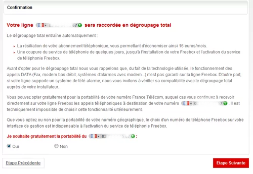 L’habillage graphique présenté lors de la contraction d’un abonnement Freebox Révolution V6 avec portabilité du numéro devient plus lisible.