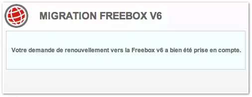 "Votre demande de renouvellement vers la Freebox V6 a bien été prise en compte"