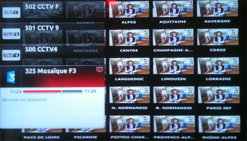 En effet, si la mosaïque des chaînes est bien présente sur le canal 325, il n’est pas possible d’interagir dessus et donc sélectionner la déclinaison régionale souhaitée.