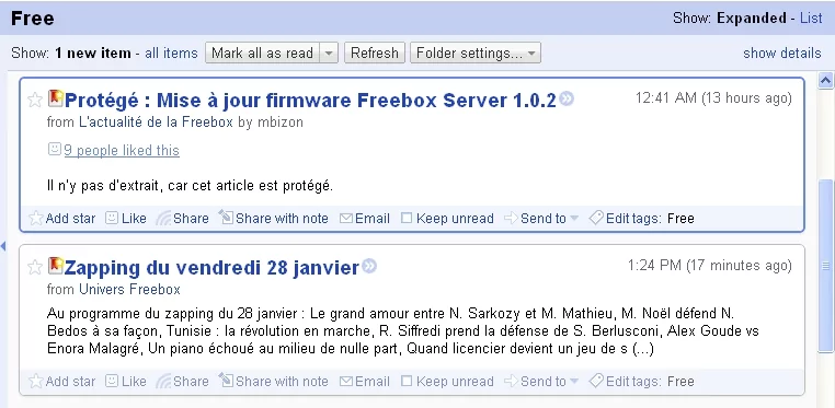 Free avait annoncé une seconde mise à jour pour la Freebox Révolution, qui aurait du être déployée vendredi 21 janvier. Visiblement, cette dernière est encore en beta test mais sa sortie semble imminente. En effet, le flux RSS du blog des développeurs de la Freebox a laissé apparaître le message d’annonce du firmware Freebox Server 1.0.2. Ce message a cependant été retiré très rapidement.