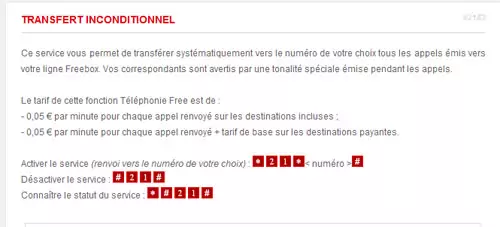 Pour un renvoi vers un numéro correspondant à une destination payante, le cout sera de 0,05 euros / minute pour chaque appel renvoyé plus le tarif de base de la destination de renvoi. »