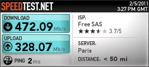 Les Freenautes ayant reçu leur Freebox Révolution la semaine dernière ont réalisé les premiers tests de débit. Et le résultat est impressionnant puisque selon plusieurs témoignages, ceux-ci frôlent les 500 Mb/s en download et 300 Mb/s en upload ! Cela ne concerne toutefois que les abonnés FTTH habitant Paris.