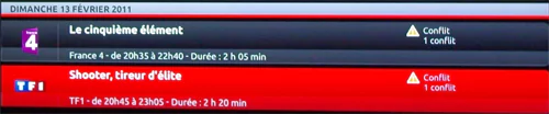 En effet, la programmation d’un ou plusieurs enregistrements se fait normalement alors que dans les faits, cela n’est pas le cas. Il faut avoir la bienveillance de jeter un coup d’œil dans l’espace « Mes enregistrements pour voir les conflits. Or, il n’est pas encore possible de modifier les enregistrements programmés. Il faut donc supprimer l’enregistrement s’il l’on veut regarder une autre chaîne. Cette problématique sera solutionnée dans le prochain firmware. C’est aussi le cas pour l’enregistrement des programmes de la télévision numérique terrestre.