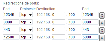 Volontairement, nous choisissons de ne pas couvrir ce point mais sachez que cela est possible. Cela dit, une fois la passerelle ouverte, le NAS est accessible via l’extérieur notamment via votre Smartphone avec l’application Seedbox. Pour ce faire, il vous suffit de reporter votre adresse IP Publique et de permettre quelques redirections de port via votre Interface de Gestion (IDG). Dans l’onglet « configurer mon routeur » accessible dans la rubrique internet, reportez les ouvertures de port comme mentionnés sur l’image.
