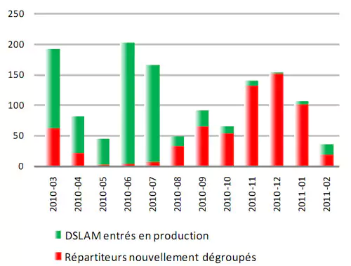 Après une fin d’année sur les chapeaux de roue pour Free, le dégroupage a accusé une baisse de régime au mois de fevrier avec seulement 19 nouveaux NRA raccordés au réseau de Free (contre plus de 100 par mois pour les 3 mois précédents).