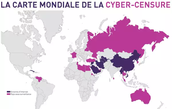La France fait partie, depuis ce week-end, des seize pays placés "sous surveillance" par l’association, alors que dix autres (comme la Chine, l’Iran ou Cuba) sont classés "ennemis d’internet".