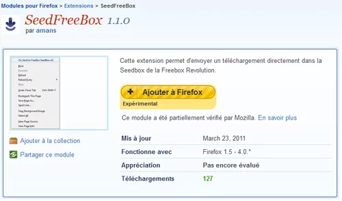 Il en est de même pour l’extension SeedFreeBox 1.1.0 qui permet d’envoyer un téléchargement directement dans la Seedbox de la Freebox Révolution.