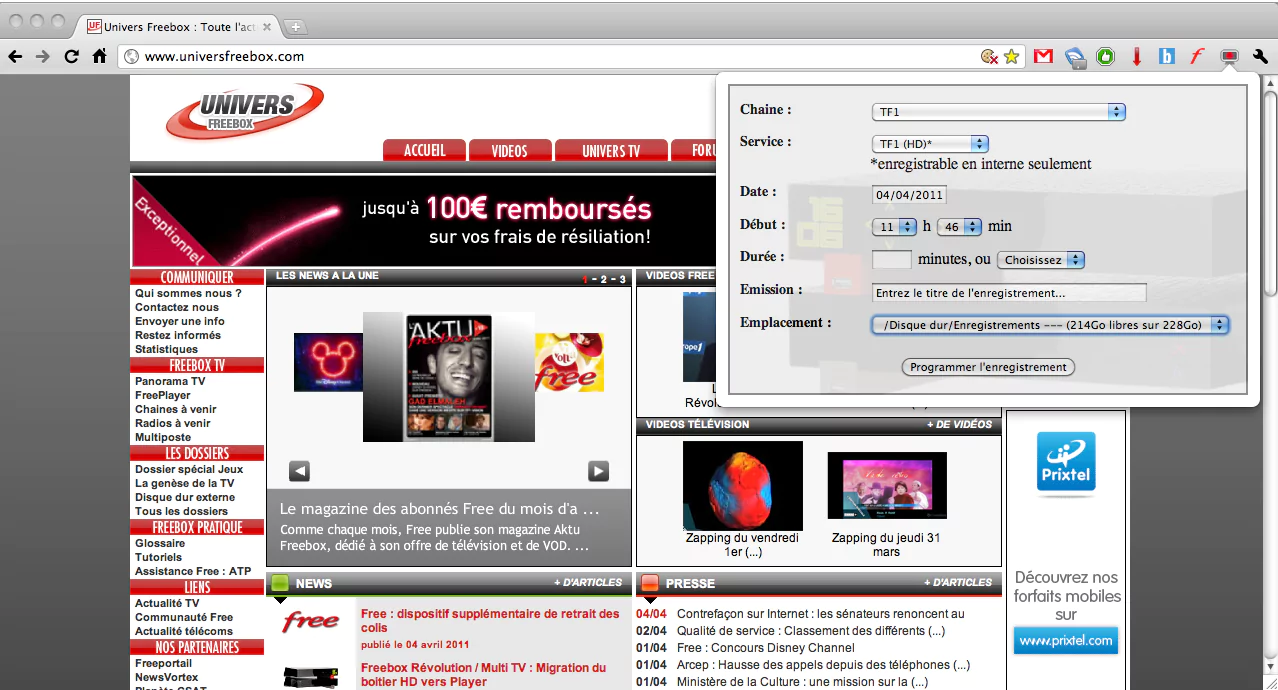 Free permet de programmer des enregistrements à distance depuis sa console de gestion, aujourd’hui un nouveau plugin (non développé par Free) vient de faire son apparition pour le navigateur Chrome facilitant la programmation.
