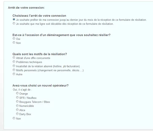 Au travers de la page de résiliation de l’interface de gestion de l’abonné, Free souhaite aussi connaître quels sont les motifs de résiliation du freenaute. Il est également possible d’indiquer au fournisseur d’accès quel est le nouvel opérateur choisi.