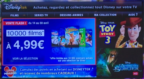 Comme annoncé ce matin, Disneytek (canal 45) et ABCtek (canal 28) viennent d’arriver sur la Freebox. Il est donc dorénavant possible d’acheter des séries et des films de façon définitive.