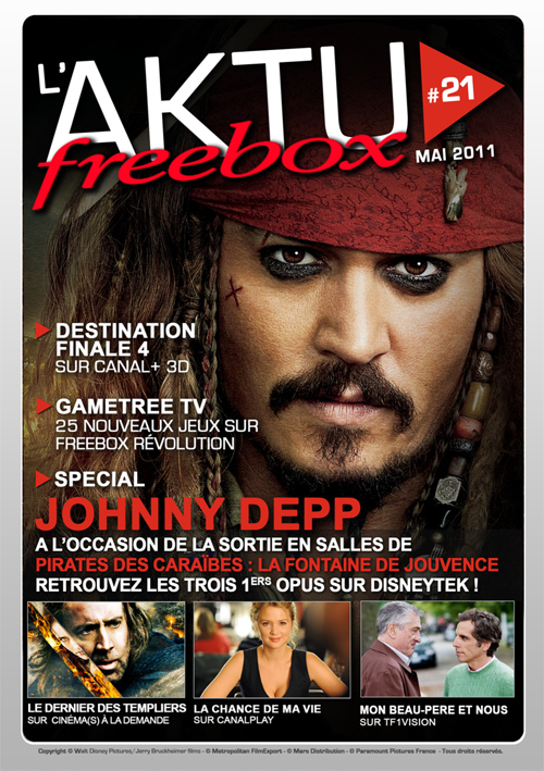En couverture ce mois-ci, plusieurs films comme la trilogie de Pirates des Caraïbes sur Disneytek ou encore le Dernier des Templiers sur Cinéma à la demande mais aussi des jeux avec la toute nouvelle interface de jeux sur Freebox Révolution, Gametree TV et enfin de la 3D avec Destination final 4 sur Canal + 3D.
