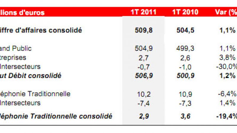 A la vue des recrutements important réalisés par Iliad au cours du 1er trimestre 2011, on pouvait s’attendre à une forte augmentation du chiffre d’affaires du groupe sur la période. Celle-ci est cependant légère avec une progression de 1,1% sur le 1er trimestre 2011 par rapport à la même période de 2010. Sur les 3 premiers mois de l’année, le chiffre d’affaires du groupe s’établit à 510 millions d’euros