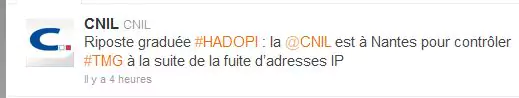 L’affaire est prise très au sérieux par la Hadopi et depuis quelques heures, la CNIL est à Nantes pour contrôler TMG à la suite de la fuite d’adresses IP.
