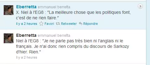Selon les tweets de Emmanuel Berretta, journaliste à Le Point, le fondateur de Free vient de lacher une formule bien à lui sur le discours de Nicolas Sarkozy : "Je ne parle pas très bien ni l’anglais, ni le français. Je n’ai donc rien compris du discours de Sarkozy d’hier. rien".
