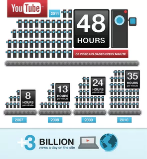 Le site internet de partage de vidéos YouTube a annoncé hier que 48 heures de vidéo étaient téléchargées chaque minute sur le site, contre 35 heures à la fin de l’année dernière.