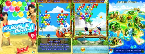 Tirez les bulles multicolores pour faire exploser des groupes de bulles ou plus de la même couleur. Aidez Malia et Kale à trouver le trésor caché sur cette île paradisiaque dans ce jeu d’arcade plein de surprises. Composé de cent niveaux variés et surprenants pour s’amuser pendant des heures, de sept types de défis différents pour mettre votre habilité à l’épreuve, Bubble Island offre un univers captivant et ludique. 17 bulles spéciales sont à découvrir, de la Bulle caméléon à la bulle explosive.