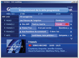 Le Guide des Programmes sert également d’interface pour le magnétoscope numérique. Pour enregistrer un programme, une seule pression du bouton de la télécommande sur la tranche horaire correspondante suffit. Le programme sera enregistré à l’heure dite. Une deuxième pression permet de programmer un enregistrement récurrent (pour une série, par exemple). Une troisième pression annule l’enregistrement.