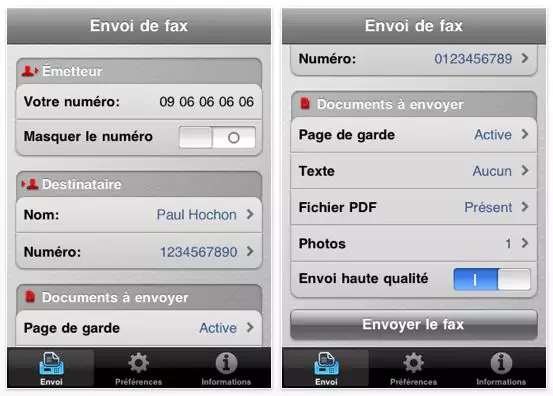 Freebox Fax est une application qui permet d’envoyer des fax depuis votre iPhone. Il n’est donc pas utile de passer par votre console de gestion pour envoyer un document numérisé, une photo ou un fichier pdf qui seront directement transformés en fax pour votre correspondant.
