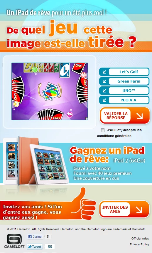 Pour l’été, Gameloft la société qui propose neuf jeux sur le freestore de la Freebox Révolution organise un jeu concours sur son compte Facebook.