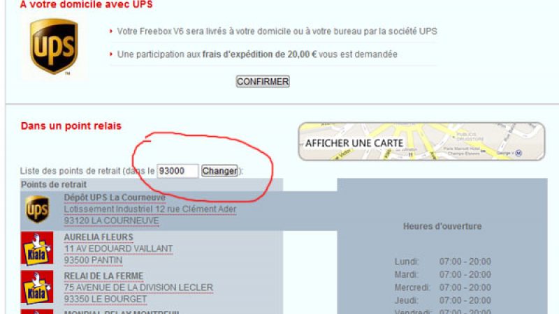 Rien n’est cependant figé puisqu’il vous est toujours possible de changer le mode de livraison de votre Freebox Révolution. Plusieurs solutions s’offrent à vous : soit une livraison à domicile par UPS, ce qui vous coutera 20 euros, soit une livraison au dépôt UPS le plus proche de chez vous, solution qui est entièrement gratuite. Dans les 2 cas, vous recevrez votre Freebox sous à peine quelques jours.