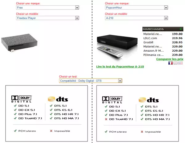 Nos confrères des Numériques ont ajouté dans leur « face à face des boitiers multimédias » le Player de la Freebox Révolution. Plusieurs test comparatifs ont ainsi été effectués comme la compatibilité des photos, des codecs vidéo et audio, des DVD et Blu-ray, les performances du MPEG-4, la télécommande ou encore la consommation d’énergie.