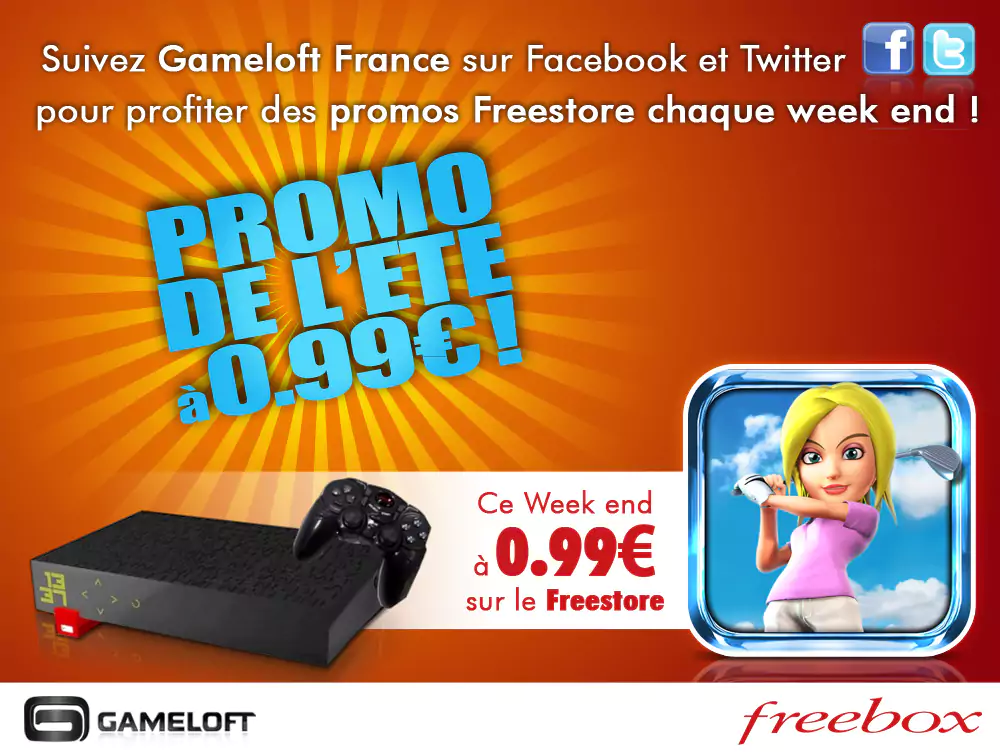 Durant l’été, chaque week end Gameloft propose un de ses jeux HD disponibles sur la Freebox Révolution à 0,99€. Ce week end, c’est Let’s Golf 2 qui bénéficie de cette promotion. Pour en profiter, il vous suffit de télécharger le jeu dans le Freestore à compter de ce soir.