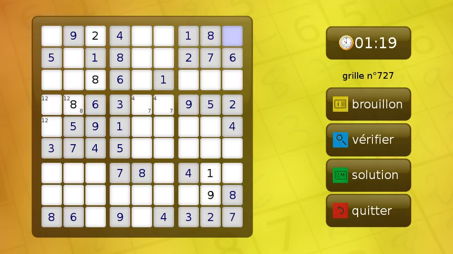Dans le cas où vous êtes bloqué en plein milieu d’une grille ? Utilisez les aides mises à disposition directement dans le jeu : solution partielle, complète, vérification des cases déjà remplies.