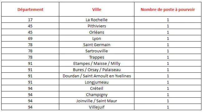 •Jours travaillés : du lundi au vendredi ou du Mardi au samedi