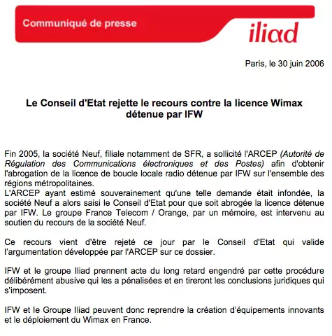 Il y a quelques mois, 9 télécom s’était attaqué à la licence Wimax détenue par Free au travers d’IFW (ex Altitude Telecom).