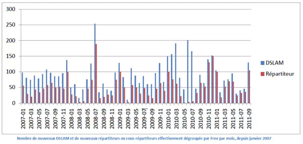 En ce mois de septembre, Free a mis un coup d’accélérateur sur le dégroupage. Avec 105 nouveaux NRA reliés à son réseau le mois dernier, l’opérateur retrouve ses scores de la rentrée 2010.