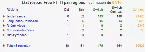 C’est bien sûr l’Ile de France qui compte le gros des troupes avec prés de 24500 abonnés, suivi par le Languedoc Roussillon avec 3 600 abonnés puis le Rhône-Alpes avec 2442 abonnés. Dernière région à compter des abonnés fibre chez Free, le Nord Pas de Calais où Valencienne affiche 138 abonnés.