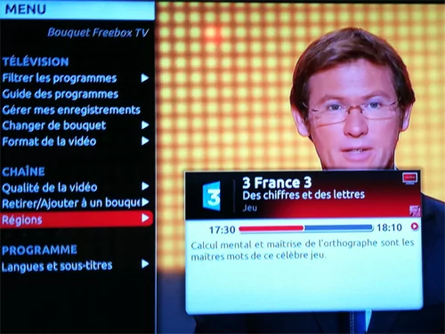 Avec la nouvelle mise à jour du player, il n’est plus nécessaire de faire défiler la zap liste jusqu’à la déclinaison régionale souhaitée. Appuyez sur la touche menu de votre télécommande et sélectionnez l’onglet Régions.