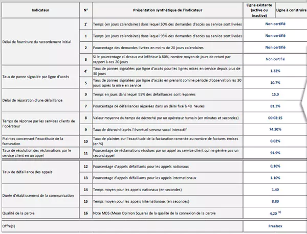 Les résultats concernant Free sont les suivants