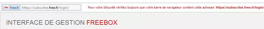Pour votre sécurité, vérifiez toujours que votre barre de navigateur contient cette adresse https://subscribe.free.fr/login/ pour éviter tous soucis.