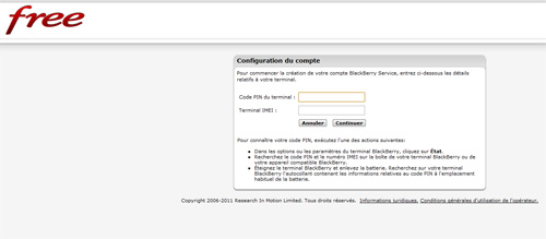 Coté terminaux, on sait maintenant que Free distribuera toutes les marques, sauf une. Ce ne sera pas l’iPhone, qui sera bien proposé par Free Mobile. Cette marque qui ne sera pas ditribuée ne sera pas non plus BlackBerry puisque, ainsi que le rapporte couverture.3g.free.fr, l’assistant de configuration BlackBerry a été mis en place sur le site du constructeur RIM, comme on peut le voir sur cette page : http://free.blackberry.com/