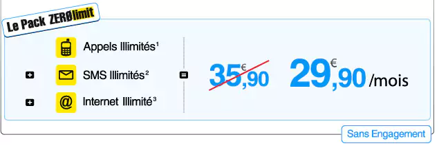 Il est déjà possible de savoir que ces rumeurs sont fausses et que Free Mobile proposera un tarif inférieur. En effet, il existe déjà des offres quadruples play où le forfait mobile illimité est moins cher, comme chez Numéricâble par exemple. Un opérateur va même au delà. Zéro Forfait lance aujourd’hui ce qu’il annonce comme « le forfait le moins cher ». Pour 29,90 euros (soit le tarif régulièrement annoncé par les rumeurs autour de Free Mobile), Zero Forfait propose un abonnement incluant les appels illimités, SMS illimités, Internet (fair-use de 500 Mo, débit réduit au-delà à 64 kb/s), sans engagement et SIM only. Ce forfait est vendu seul, sans qu’il y ait besoin d’avoir un abonnement à une box. Cette offre, proposée auparavant à 35,90 euros, n’est pas une promotion ponctuelle, il s’agit bien d’une offre pérenne.