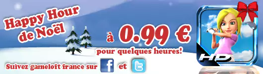 Chaque jour du 16/12 au 21/12 un jeu HD Freebox Révolution sera disponible pour quelques heures au prix de 0.99€ sur le Freestore. Le titre du jeu et l’heure de la promotion seront révélés chaque jour en exclusivité sur les comptes Facebook et Twitter de Gameloft France. Dés maintenant Let’s Golf 2 HD à 0.99€ pour quelques heures seulement ! Rendez-vous sur le FreeStore pour en profiter immédiatement.