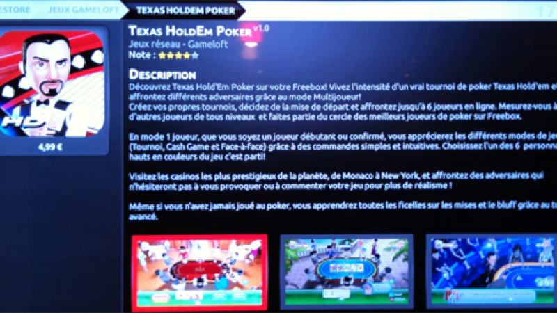 Texas Hold’em Poker est disponible sur le Freestore de la Freebox Révolution