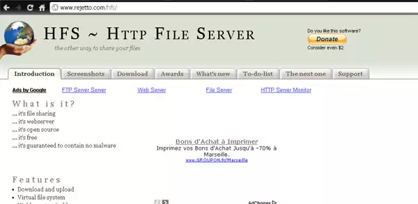 Procéder à son installation (rien de compliqué, juste à cliquer sur suivant). Une fois le logiciel installé, cliquez là où il y a la flèche afin de faire détecter son adresse IP à HFS. Dans le cas présent, l’IP est 83.150.xxx.xxx