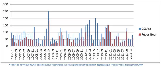 L’ADUF vient de publier, dans sa dernière newsletter, le bilan du dégroupage chez Free pour le mois de décembre. On observe une légère remontée après des mois d’octobre et de novembre assez bas en termes de dégroupage. Sur le dernier mois de l’année, ce sont ainsi 53 nouveaux NRA qui ont été reliés au réseau de Free en décembre.