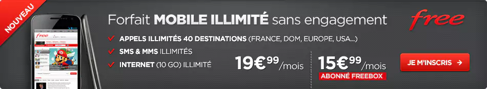 Le portail Free affiche les couleurs de Free Mobile depuis hier, un bandeau présente les deux offres Free Mobile.