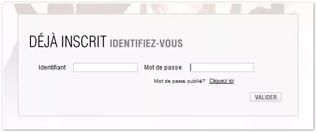 Une nouvelle page vous invite à inscrire votre Nom, Prénom (sans accent) et Email (celui que vous avez utilisé lors de votre inscription). Pour les abonnés Freebox : Si vous obtenez l’erreur « Non reconnu », veuillez reporter le même nom / prénom que sur votre facture (Majuscule / minuscule identique). Validez.