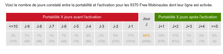 L’outil d’activation de freemobile.toosurtoo confirme cet état de fait. En effet, si plus de 67% des abonnés Free Mobile s’étant inscrits sur cet outil et n’ayant pas demandé la portabilité ont aujourd’hui une ligne active, ils ne sont que 41% lorsqu’ils ont demandé la portabilité.