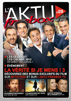 Le 29ème numéro du magazine Aktu Freebox vient de sortir. Comme chaque mois, il vous fait découvrir l’actualité de votre Freebox et en particulier de Freebox TV et des services de vidéo à la demande. Ce mois-ci, c’est La Vérité si je mens 3 qui fait la couverture. Des bonus du film sont proposés en exclusivité sur My TF1 et sur la chaîne Freebox Aktu TV.