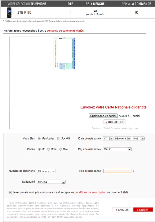 D’après nos constatations, il semble qu’il n’est pas possible de commander un téléphone portable en paiement en plusieurs fois via l’interface Free Mobile lorsque l’abonné est de nationalité autre que française. Ce bug est tout de même à prendre au conditionnel puisque cela n’a pu être observé que deux fois.